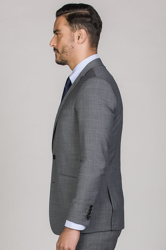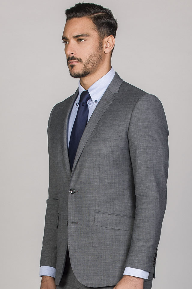 Blazer formal a apertar com 2 botões. Lapela triangular estreita com pesponto pic-pic e casa de botão e mosca em cor contraste. Bolsos laterais com pala, tipo envelope. Bolso no peito. 4 botões no punho. Aberturas paralelas atrás.