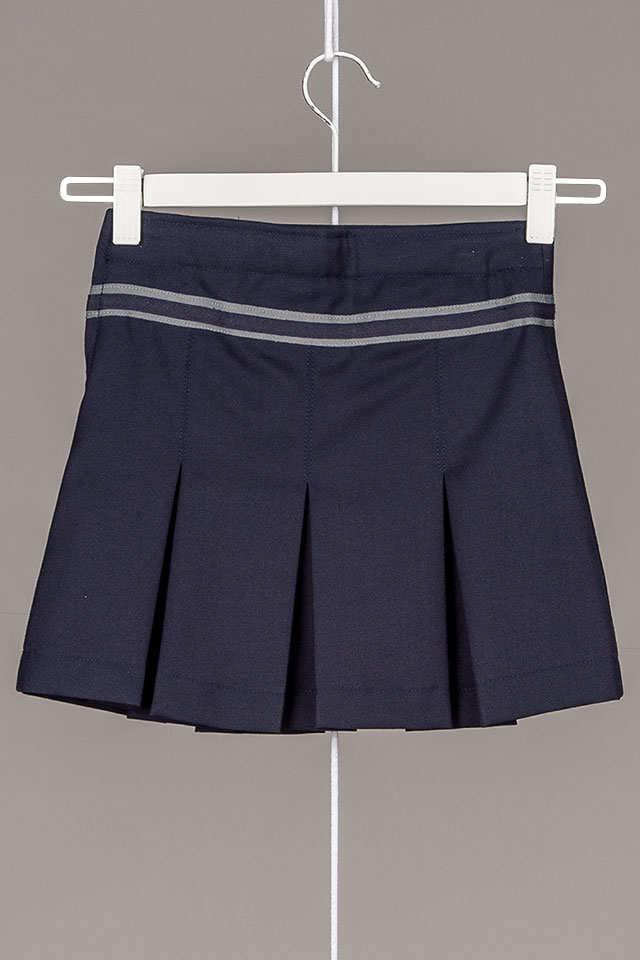 Saia de machos frente e costas. Cós avivado com fitas sarjadas de cor personalizável. Elástico no cinto atrás. Aperta na lateral com fecho.