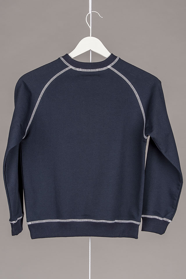 Sweatshirt de manga comprida raglan. Rib no decote, punhos e cinto. Pesponto de recobrimento em cor contraste.