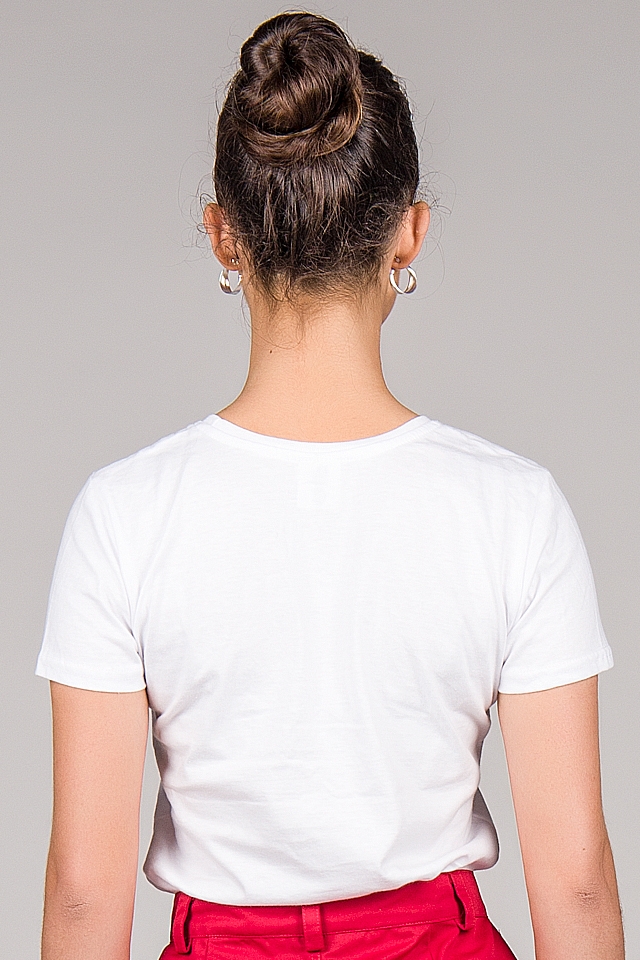 T-Shirt básica para senhora, em 100% algodão, de manga curta, a uma cor e com decote redondo.