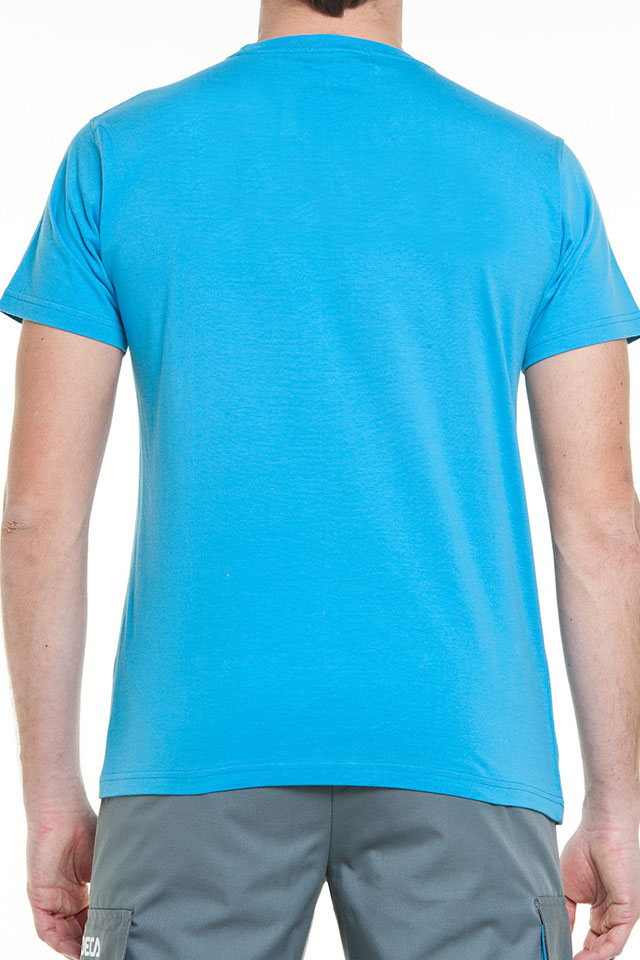 T-shirt com decote redondo; Decote em rib; Pespontos a 2 agulhas.